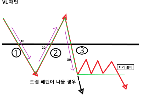 VL 패턴이 나올 경우는 매도의 방향으로 볼 수 있습니다.